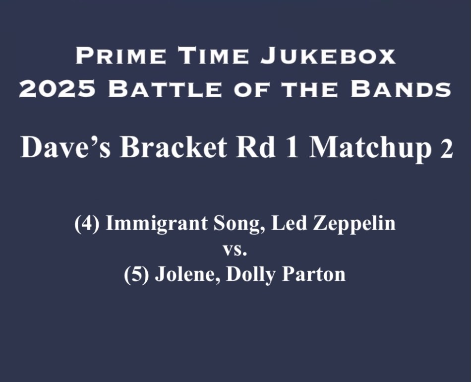 We got to Dave’s Bracket to the 4-5 matchup and it’s (4) Immigrant Song by Led Zeppelin vs. (5) Jolene by Dolly Parton.