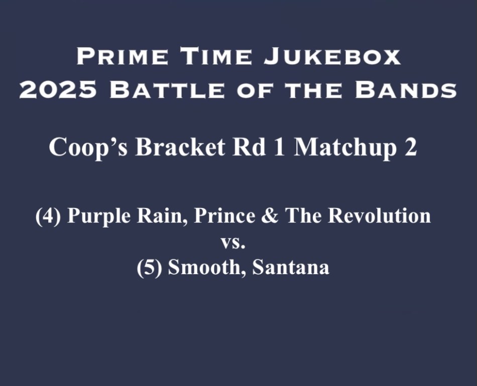 We got to Coop’s Bracket to the 4-5 matchup and it’s (4) Purple Rain by Prince and the Revolution vs. (5) Smooth by Santana