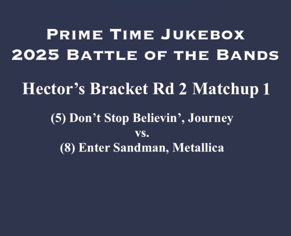 Hector’s Bracket is in Round 2. It’s (5) Don’t Stop Believin’ by Journey vs. (8) Enter Sandman by Metallica.