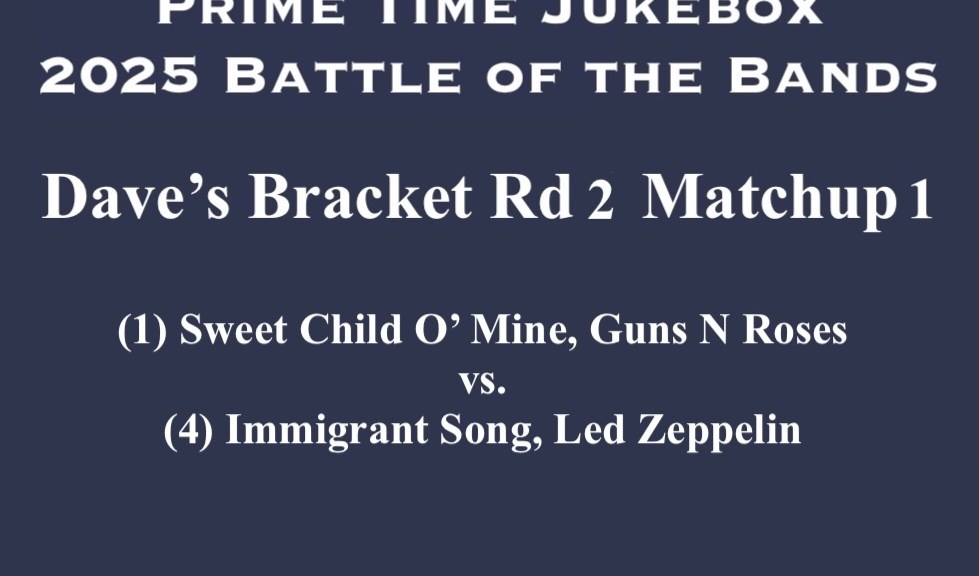 Dave’s Bracket is in Round 2. It’s (1) Sweet Child O’ Mine by Guns N Roses vs. (4) Immigrant SongContinue Reading