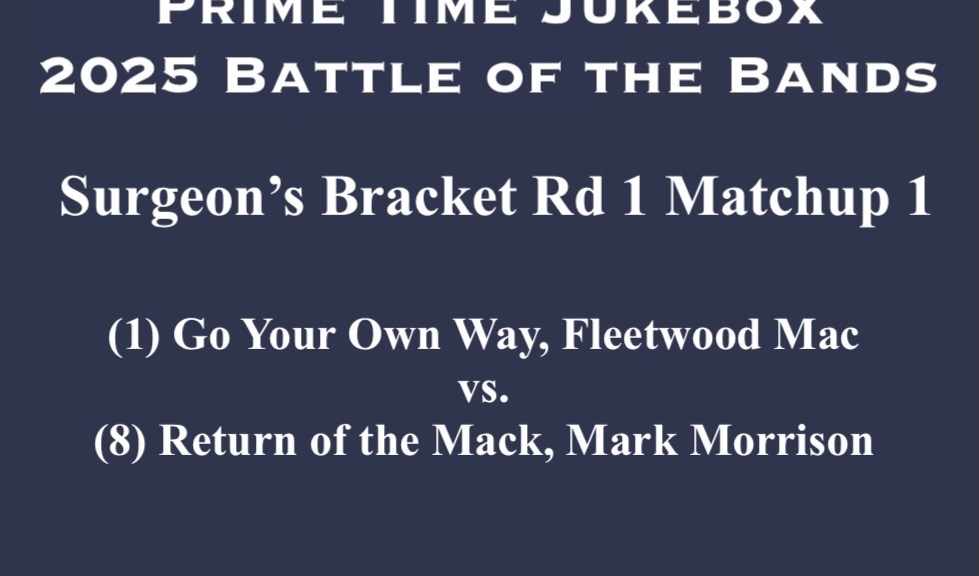 by William Cooper July 27, 2025 Announcements 2025 Battle of the Bands: Go Your Own Way vs. Return of the Mack We go to Surgeon’s Bracket to the 1-8 matchup and it’s (1) Go Your Own Way by Fleetwood Mac vs.Continue Reading